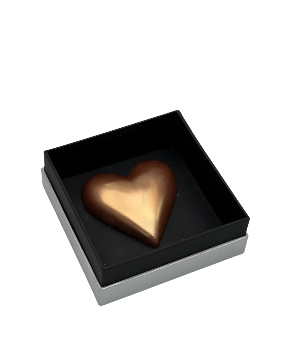 The Luxe Collection is a minimalist expression of elegance and emotion, featuring a single premium golden heart chocolate crafted with smooth texture and refined flavour. Presented in a sleek keepsake box, this striking piece embodies artisanal precision and timeless design. Perfect for meaningful gestures and intimate gifting, this collection transforms a simple moment into a powerful statement of love and sophistication.