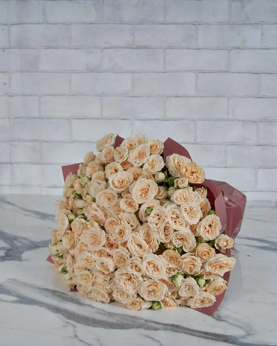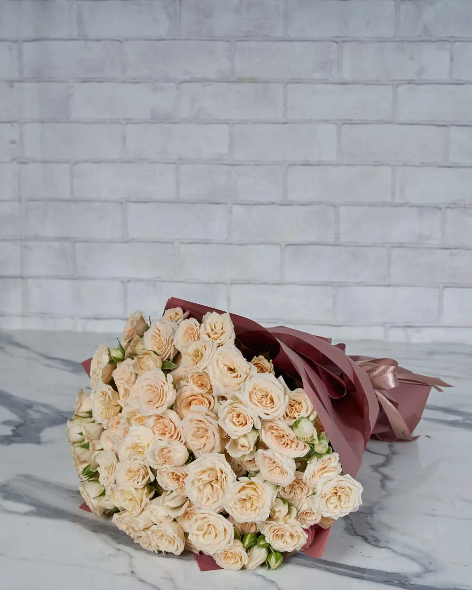 A soft, romantic bouquet of Salinero rose spray with each stem bearing 3 to 4 dainty blooms, creating a lush and textured finish.Same-day deliveries: